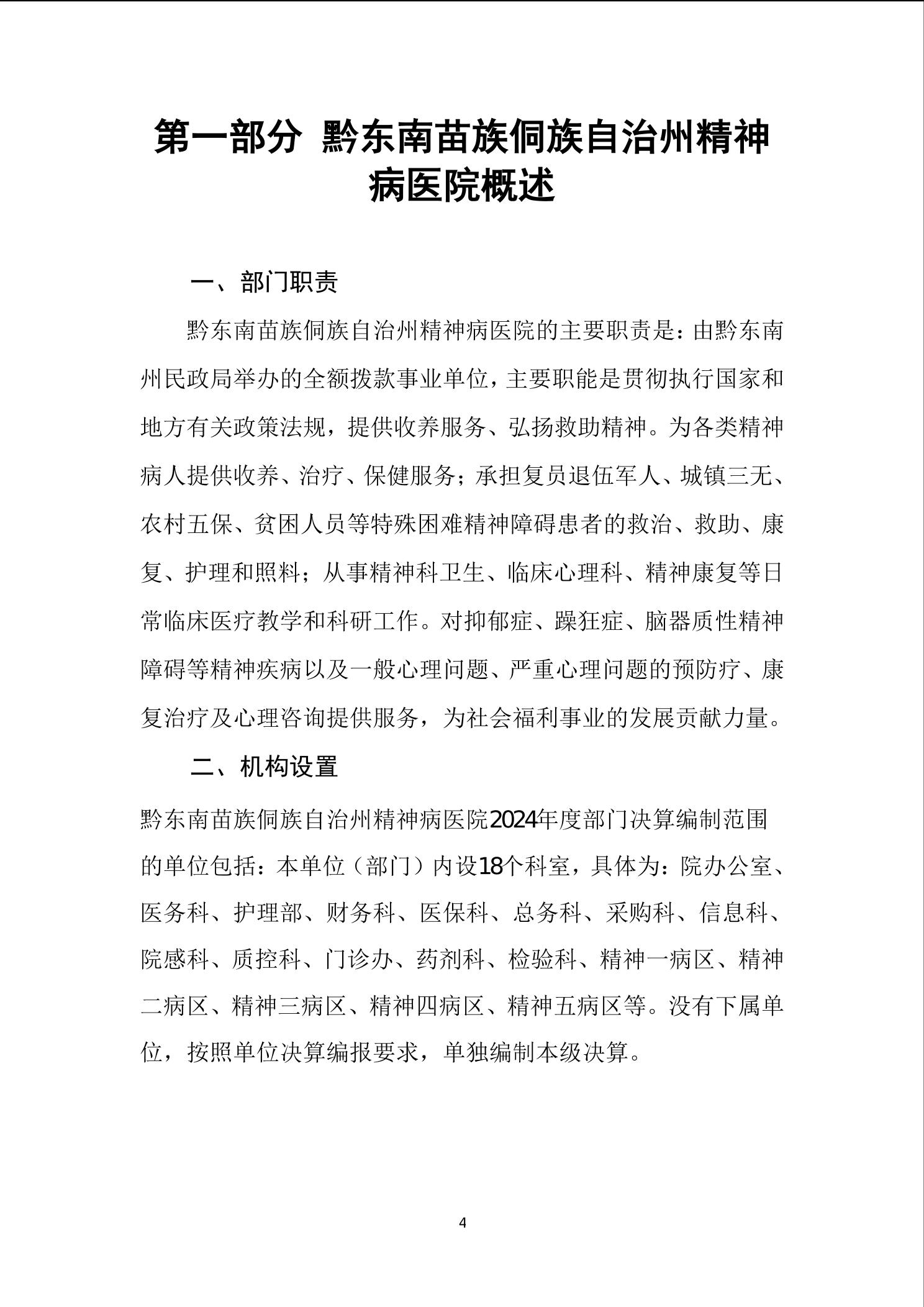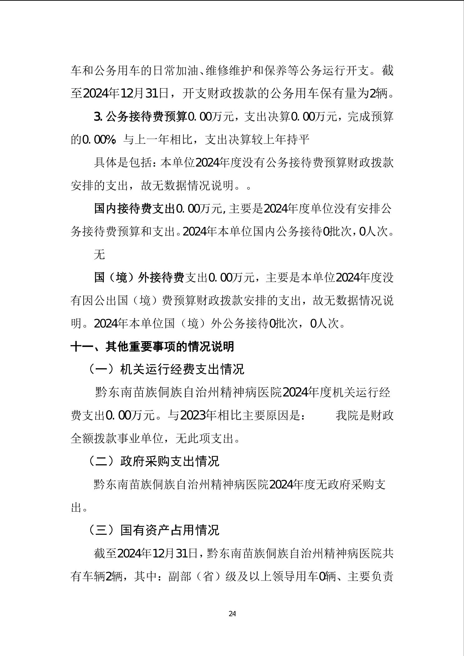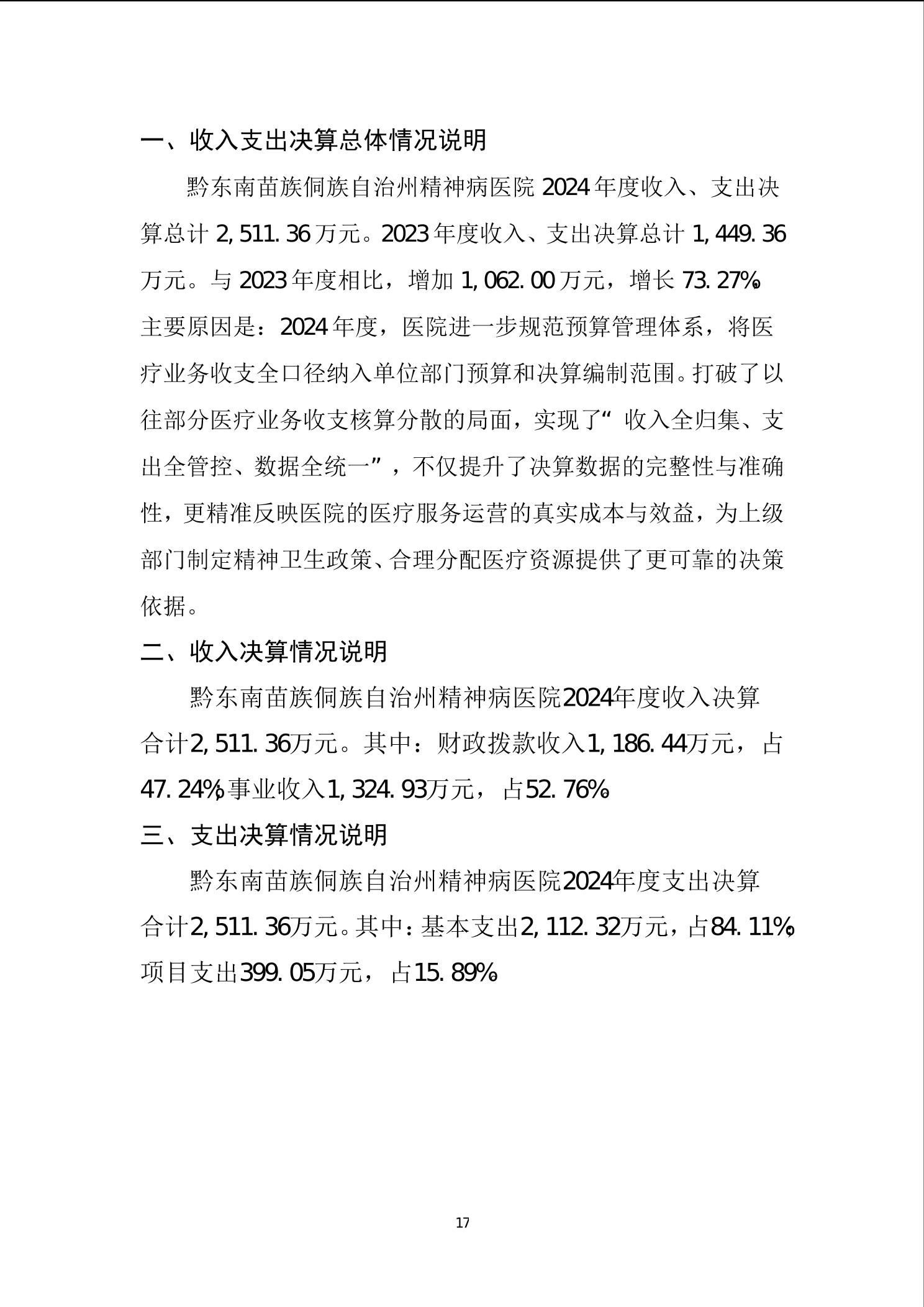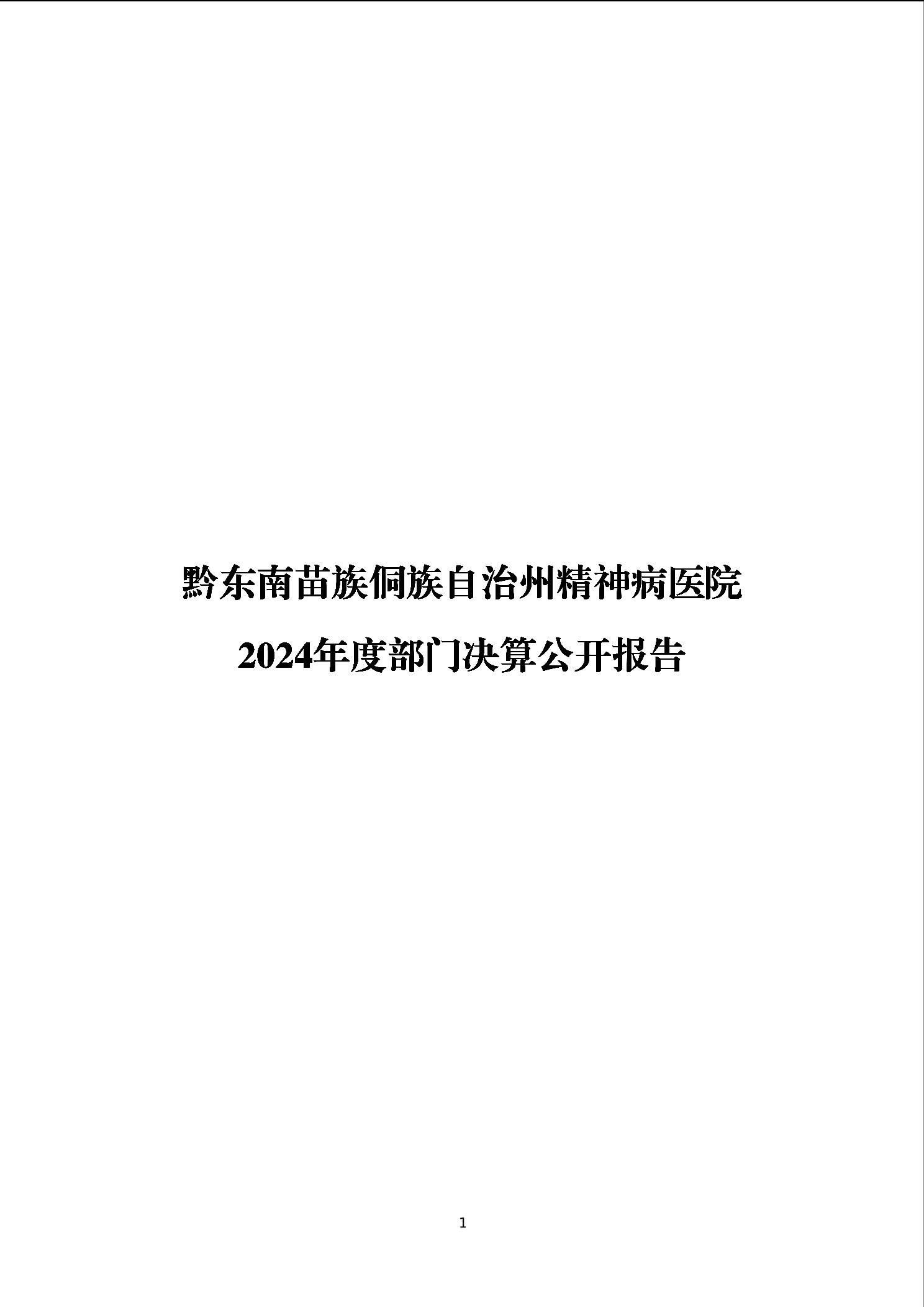 黔东南苗族侗族自治州精神病医院2024年度贵州省部门决算公开报告