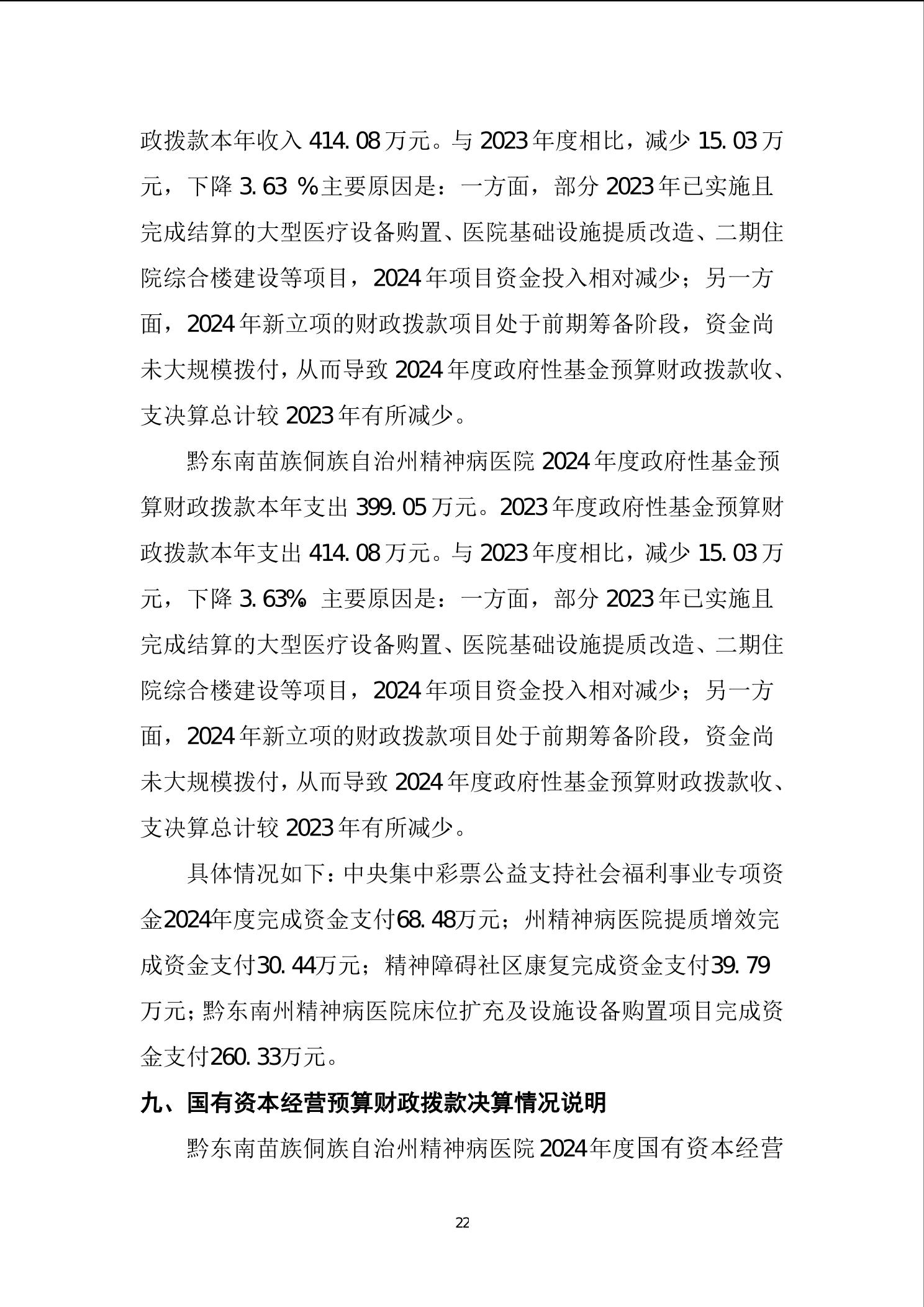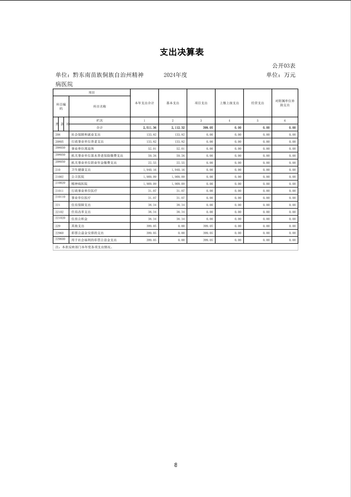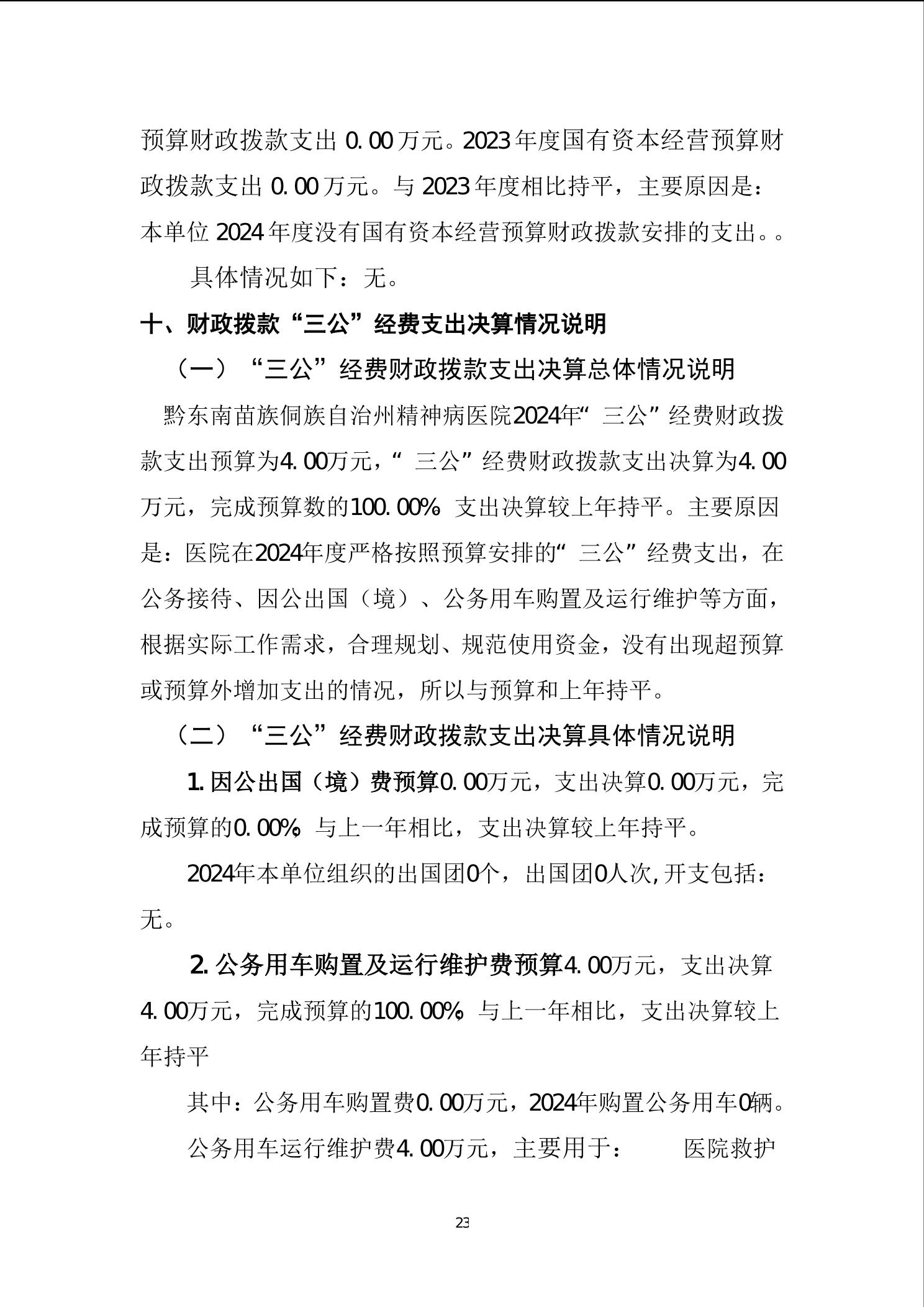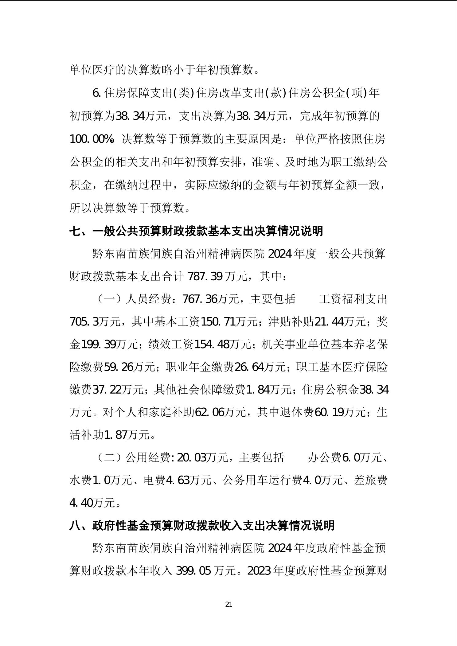 黔东南苗族侗族自治州精神病医院2024年度贵州省部门决算公开报告