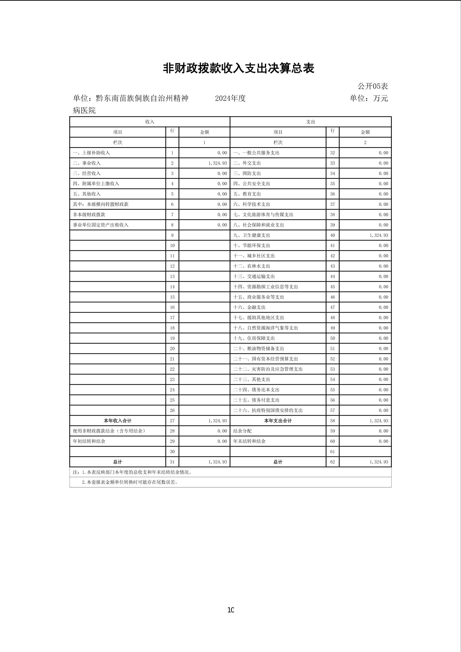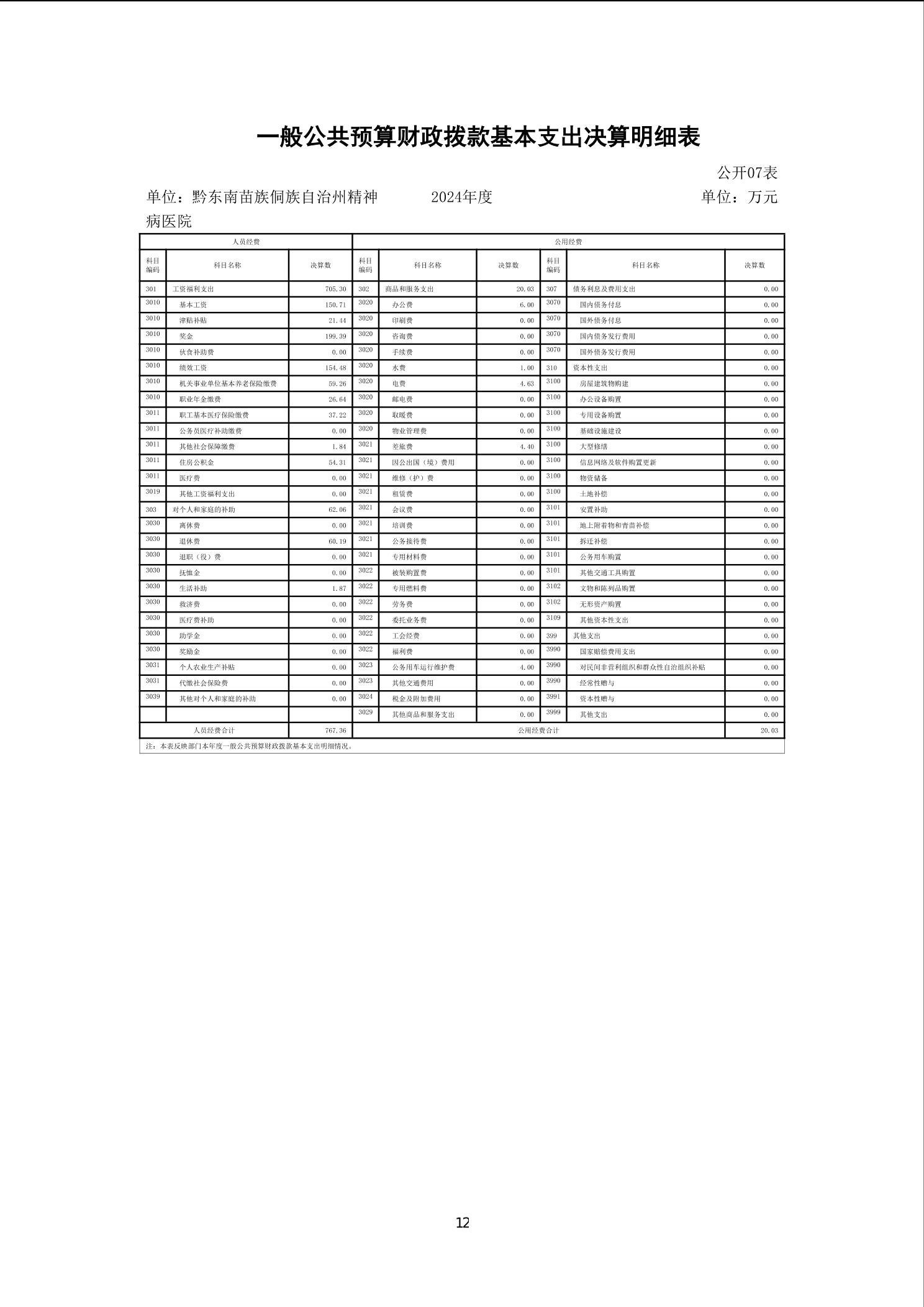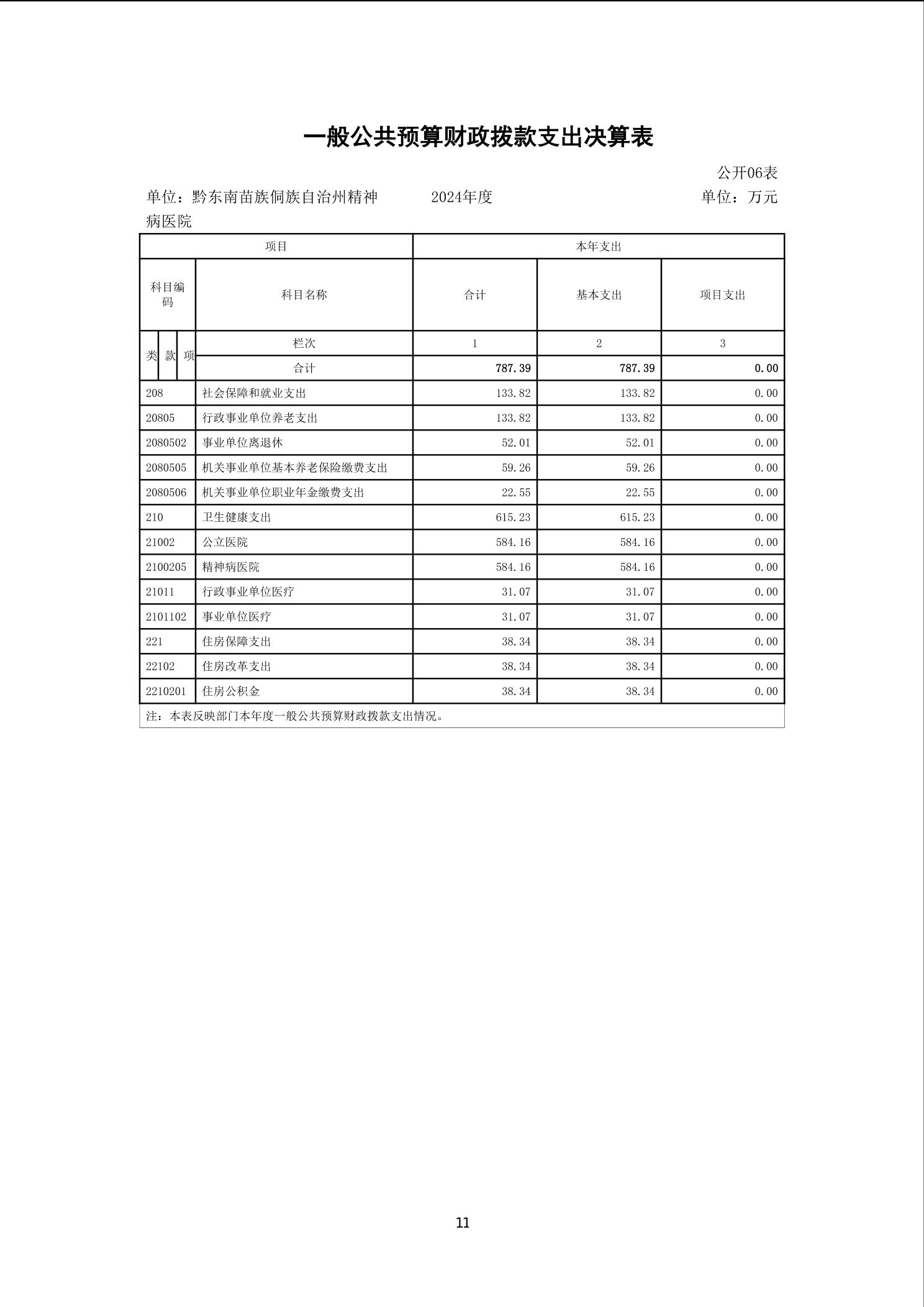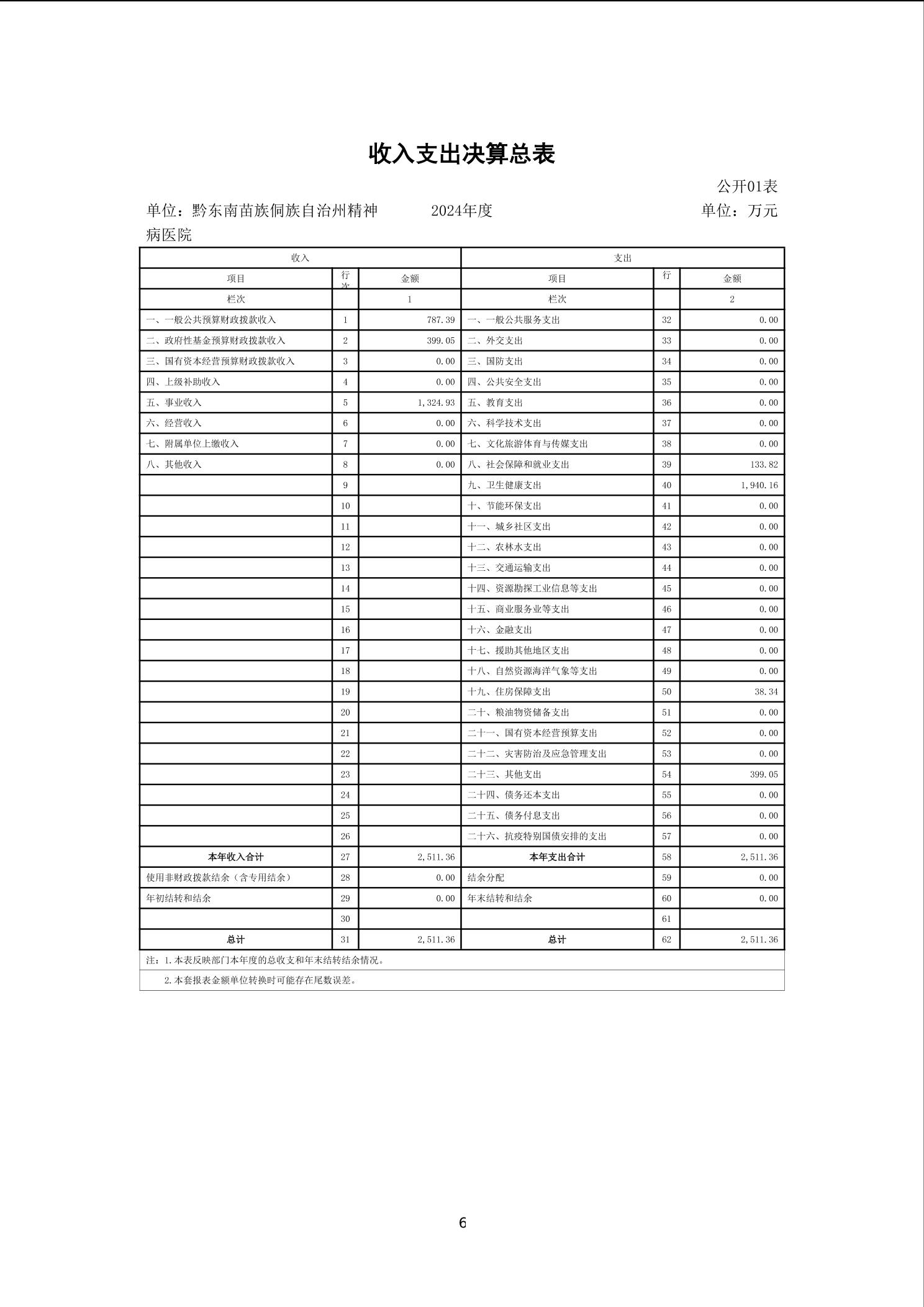 黔东南苗族侗族自治州精神病医院2024年度贵州省部门决算公开报告