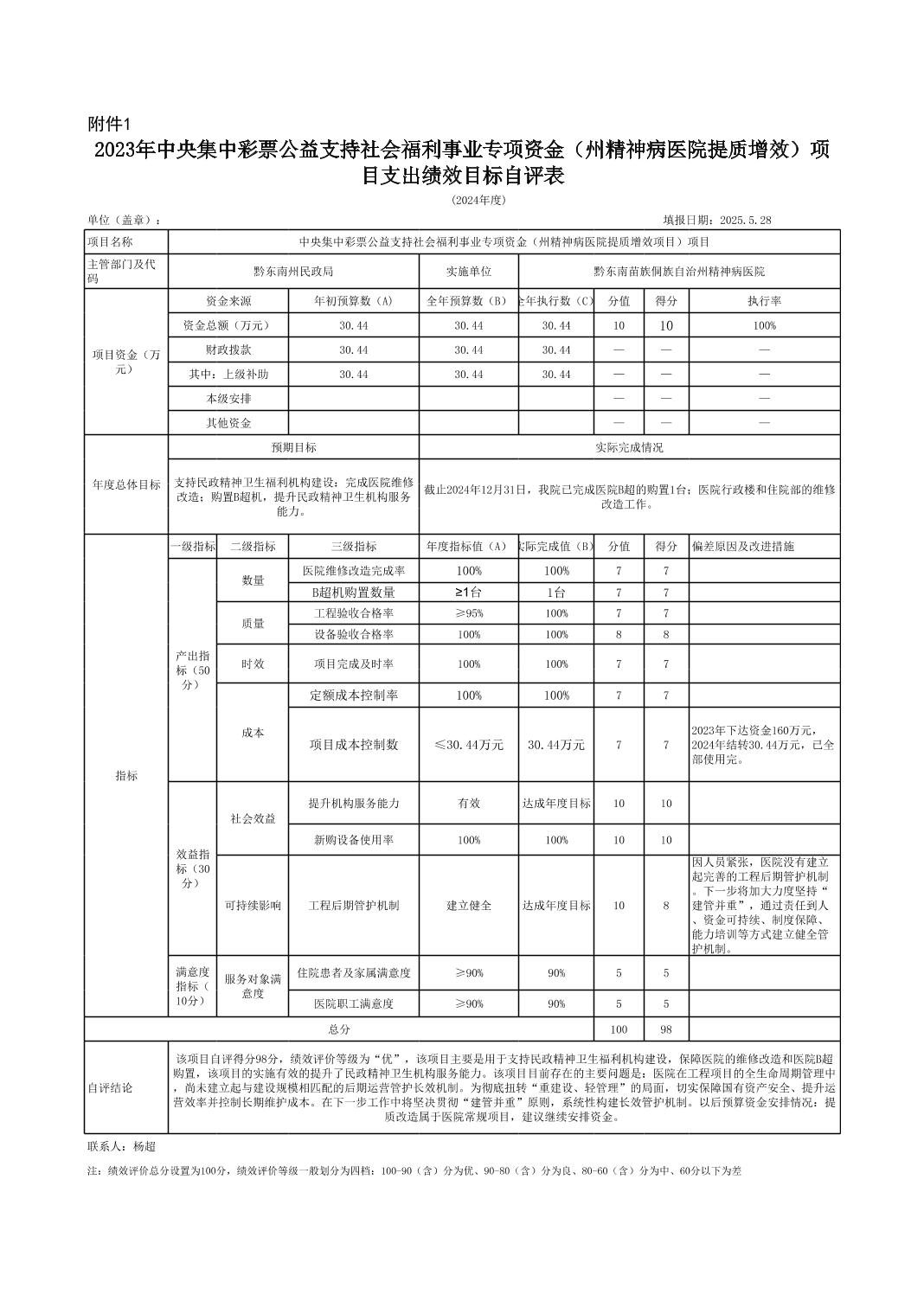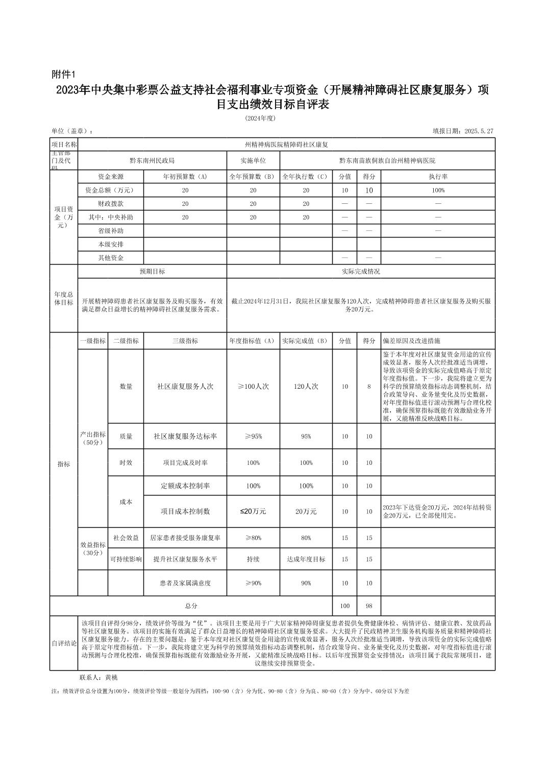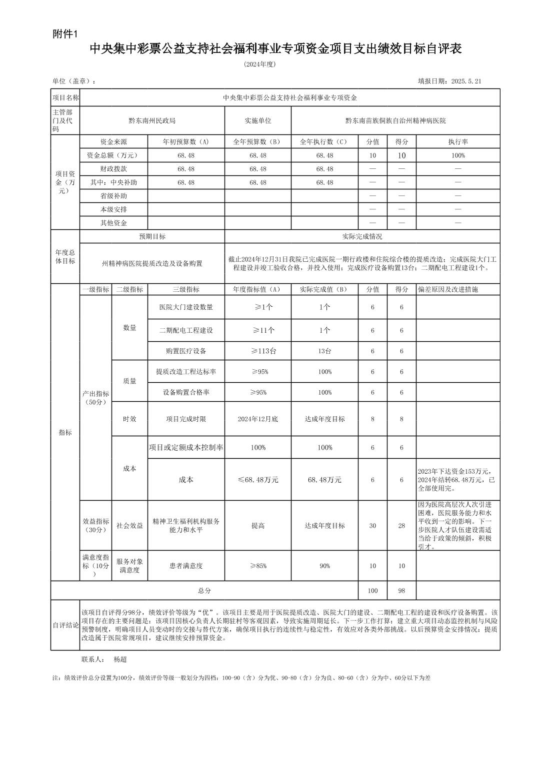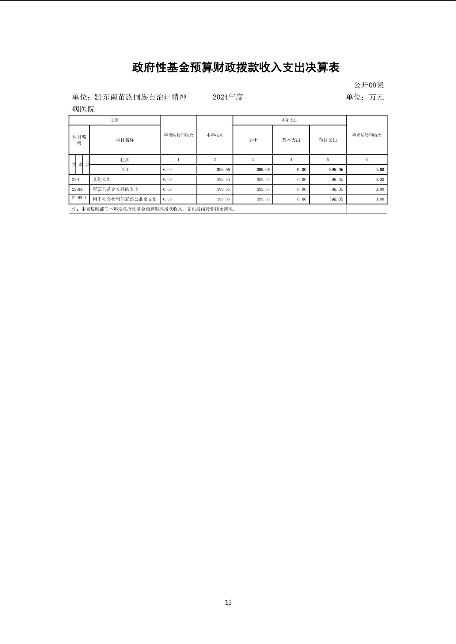 黔东南苗族侗族自治州精神病医院2024年度贵州省部门决算公开报告